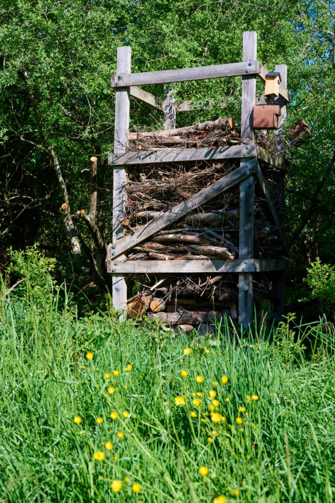 Der Verein für Naturerhaltung und Heimatpflege Schöllbronn hat den in die Jahre gekommenen Lebensturm am Dorfbach erneuert. Lebenstürme bieten vor allem Insekten, aber auch Vögeln, Kleinsäugern, Reptilien und Amphiben Rückzugs-,